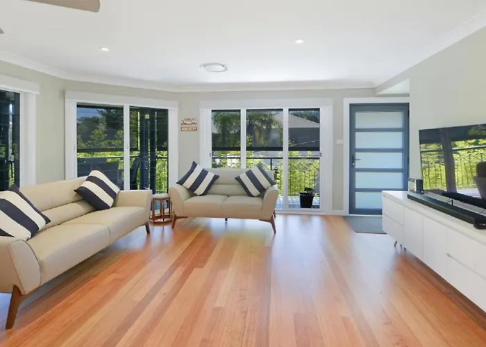 从度假屋步行25分钟可至棚屋海岬, 到The Central Coast Marine Discovery Centre有3.4公里。 阿沃卡海滩市中心离别墅不到1公里。 别墅距离Jaws Bistro酒吧仅350米。 客人可以去距离酒店仅几步之遥的Rock Pool游览。